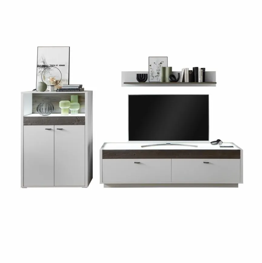 - Wohnwand bestehend aus Highboard, TV-Lowboard und Wandboard
