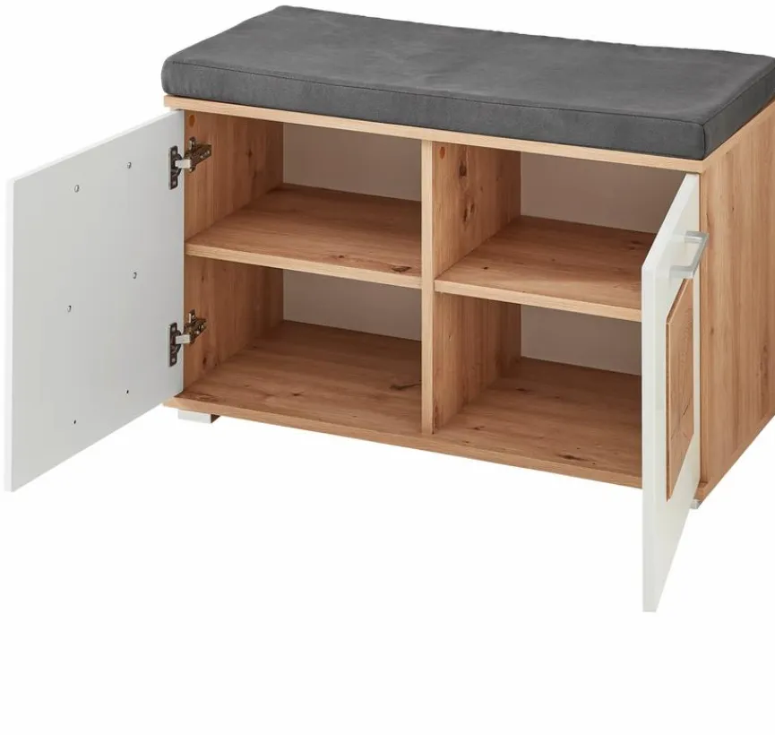 Die Garderobenbank Fun des Herstellers Innostyle ist mit einem praktischen Staufach unter der Sitzfläche ausgestattet. Der großzügige Platz hinter den Türen der angesagten Umkleidebank eignet sich ideal zum Verstauen Ihrer Schuhe. So hält die Garderobenbank Fun Ihre gesamte Fußbekleidung übersichtlich geordnet und bietet Ihnen zum Anziehen eine stabile Sitzgelegenheit.
