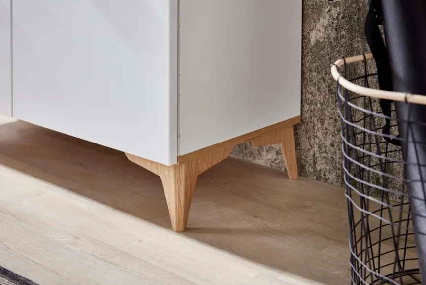 - Aus Holzwerkstoff (MDF) in matt weiß, Absetzungen in Eiche Altholz Nachbildung