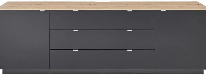 - Mit 2 Türen, 3 Einlegeböden und 3 Schubkästen mittig