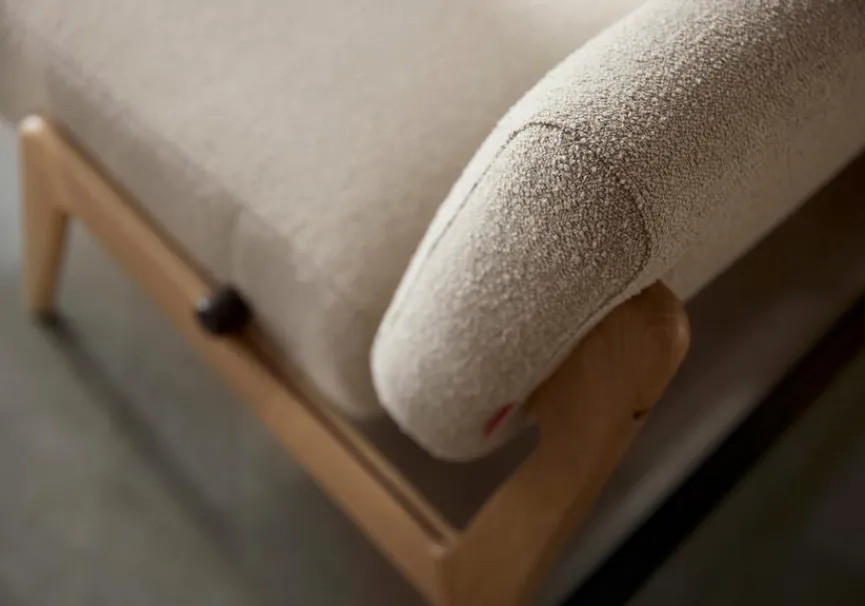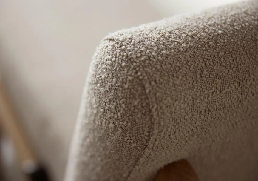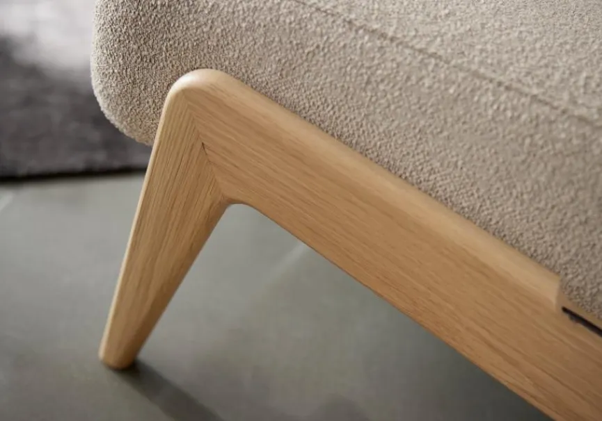 - Bezug aus Stoff (bouclé) in beige (539), Füße aus massivem Eichenholz lackiert