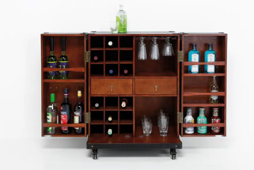 Der Barschrank Globetrotter 77066 von KARE DESIGN bietet sowohl Platz für allerlei feine Spirituosen und Gläser als auch ein herrlich dekoratives Design. Ein Bezug in Krokodiloptik und Griffe im Koffer-Look verleihen dem Möbel Charakter und Extravaganz. Zu Interieur im Kolonialstil passt der Barschrank Globetrotter 77066 zum Beispiel außerordentlich gut.