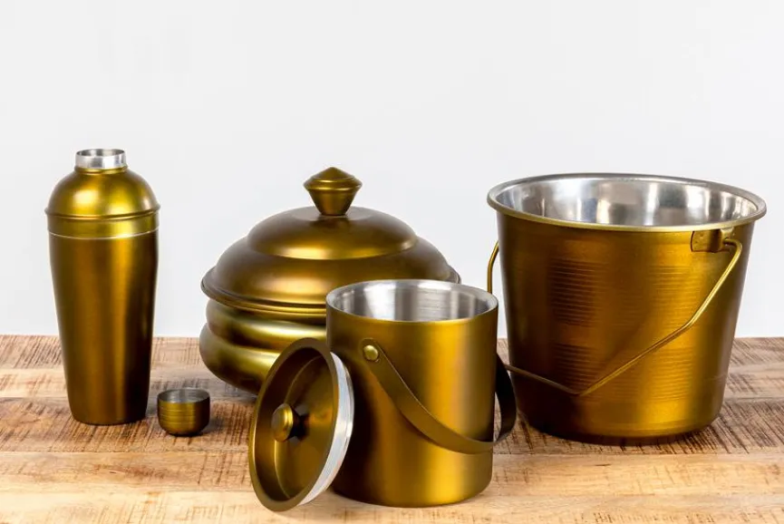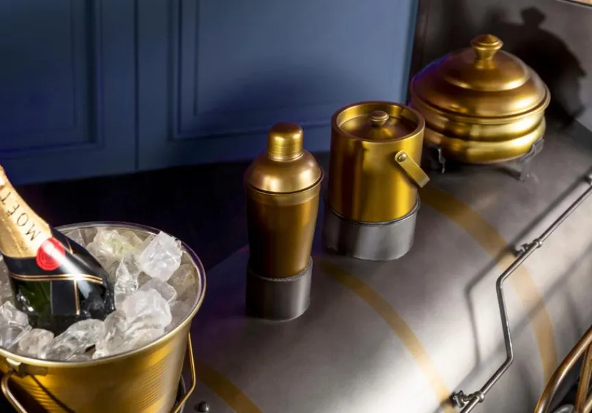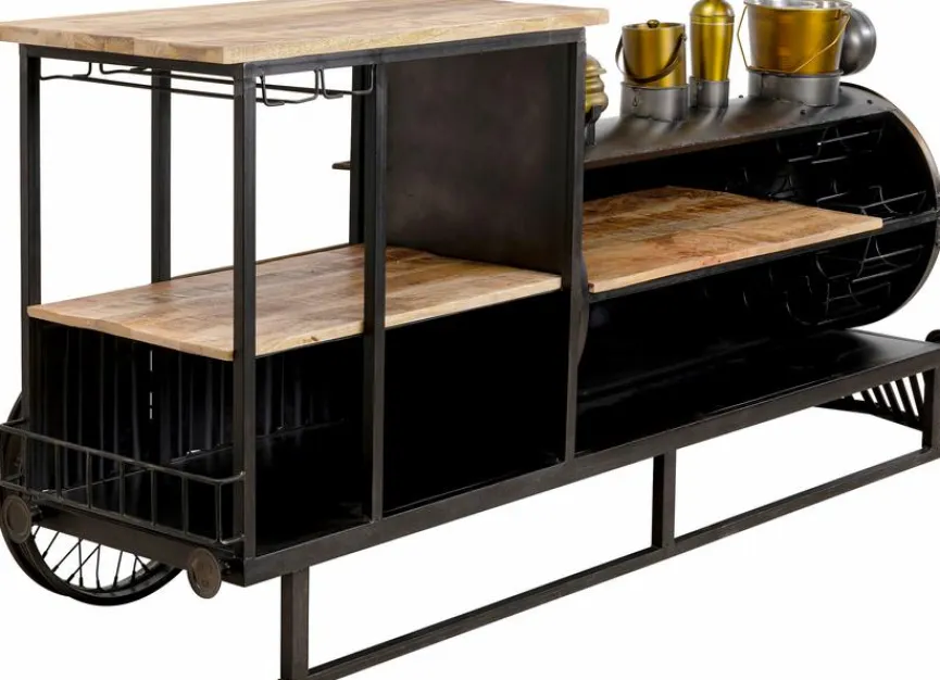 - Mit 2 Glashalter für 10 Gläser, 1 Sektkühler, 1 Weinkühler, 1 Shaker und 1 geschlossenem Bahälter