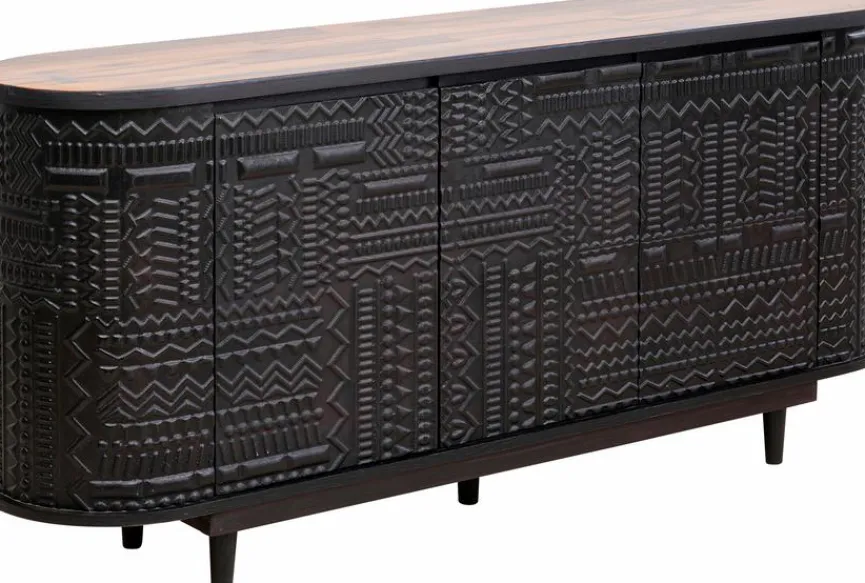 Das Sideboard Berber 87260 aus dem Hause KARE DESIGN lenkt mit jeder Menge Charme und Charakter die Blicke auf sich. Dekorative Schnitzereien im Bereich der Fronten verleihen dieser geräumigen Kommode ihren aufregend schönen Look. Kombinieren Sie das Sideboard Berber 87260 am besten mit Möbeln im Ethno- oder Kolonialstil!