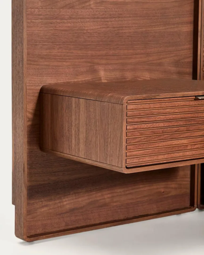 - Aus Holzwerkstoff (MDF) mit Nussbaumfurnier in dunkel