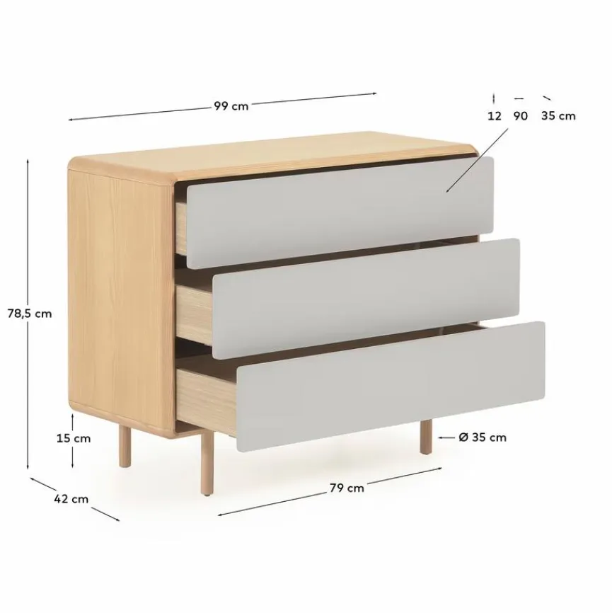 - Mit 3 Schubladen aus Holzwerkstoff mit Lack in grauweiß matt