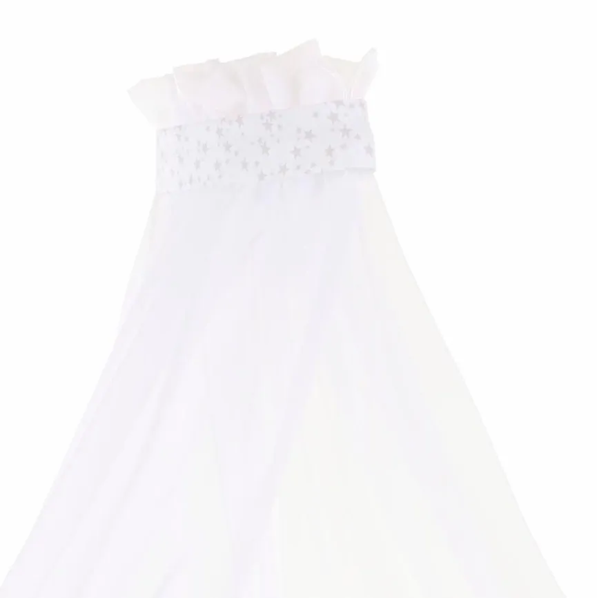 - Himmel in weiß, Bordüre aus Stoff in weiß mit Sternen in perlgrau