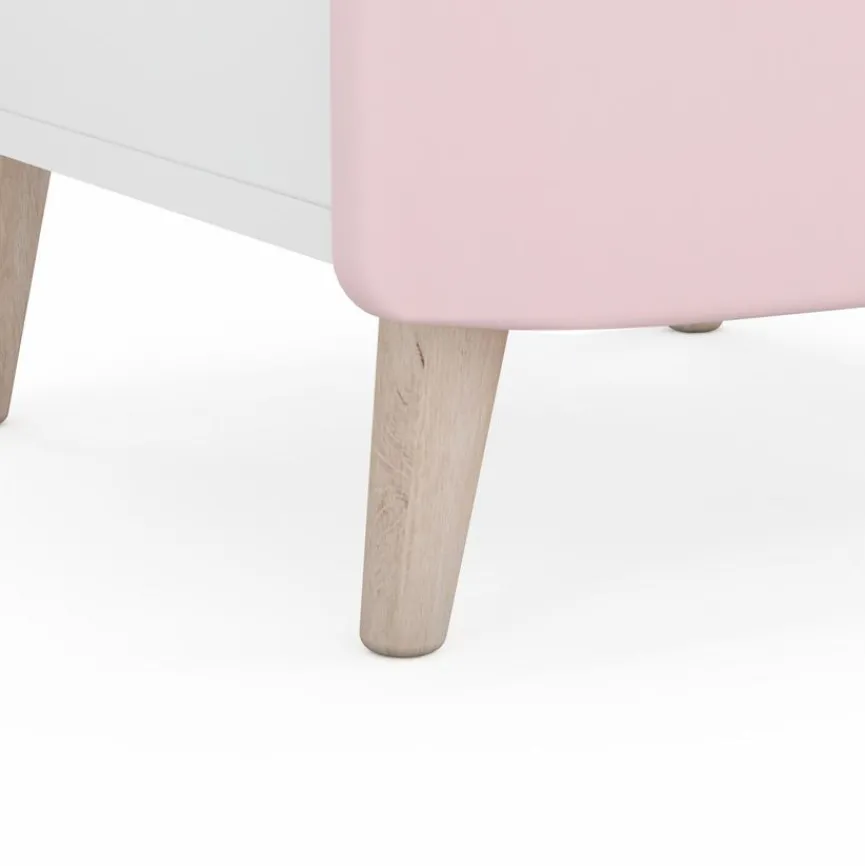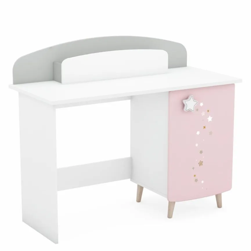 - Korpus aus Spanplatte mit kratzfester Melaminharzfolie in weiß, Fronten aus Holzwerkstoff (MDF) mit kratzfester Melaminharzfolie in pastellrosa und -grau, 3-farbiges Sternenmotiv in Siebdrucktechnik aufgetragen