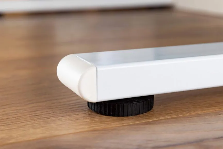 - Aus Holzwerkstoff (MDF) mit kratzfester Melaminharzfolie in weiß, Gestell aus Metall in weiß
