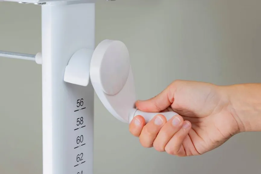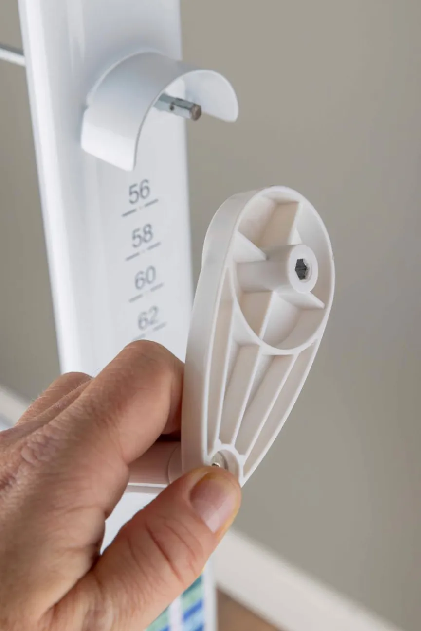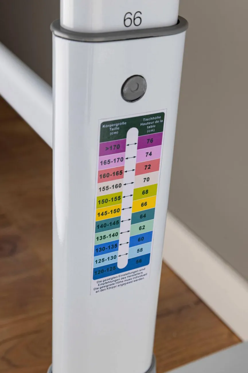 - Höhenverstellbar mittels Kurbel von 56 – 76 cm, Kurbel abnehmbar, Schreibtisch inkl. Taschenhaken