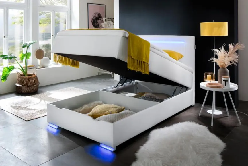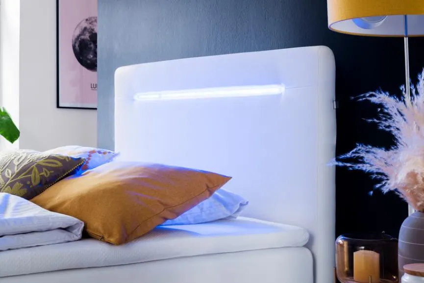 - Füße und Kopfteil inkl. Beleuchtung in blau, Kopfteil inkl. USB-Anschluss