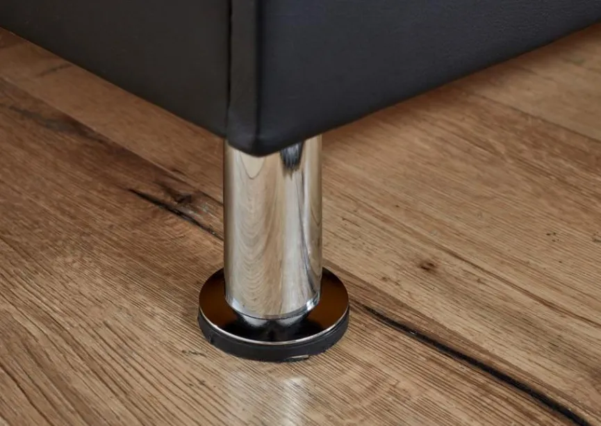 - Gestell aus Holzwerkstoff (Spanplatte) mit Bezug aus pflegeleichter Lederoptik in schwarz, Matratzenbezug aus Stoff in anthrazit, Füße aus Metall in chromoptik