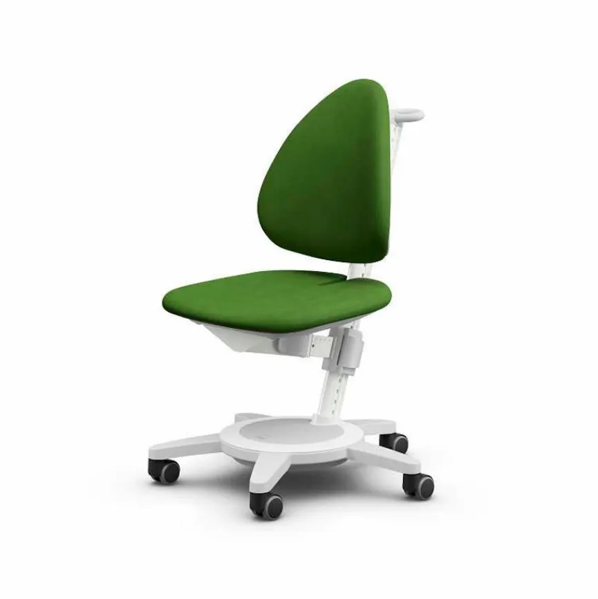 - Pendelnd gelagerte Rückenlehne, Höhe über Rastermechanik verstellbar, mit Universalrollen die für Hart- und Teppichboden geeignet sind