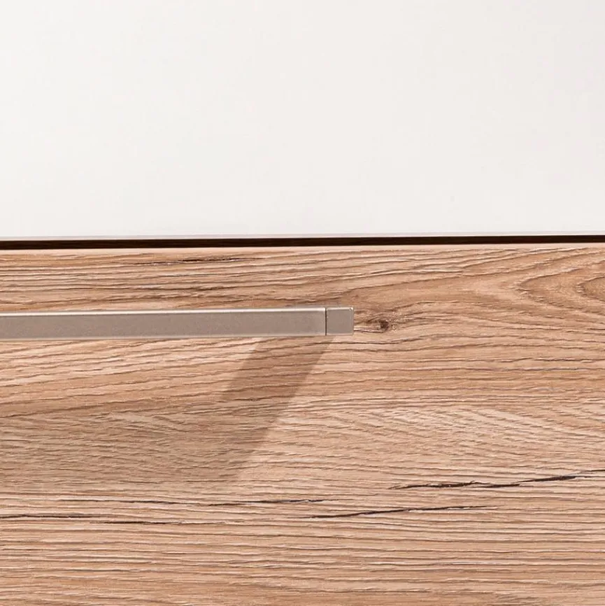 - Aus Spanplatte mit kratzfester Melaminharzfolie in Eiche-Bordeaux und Kreideweiß