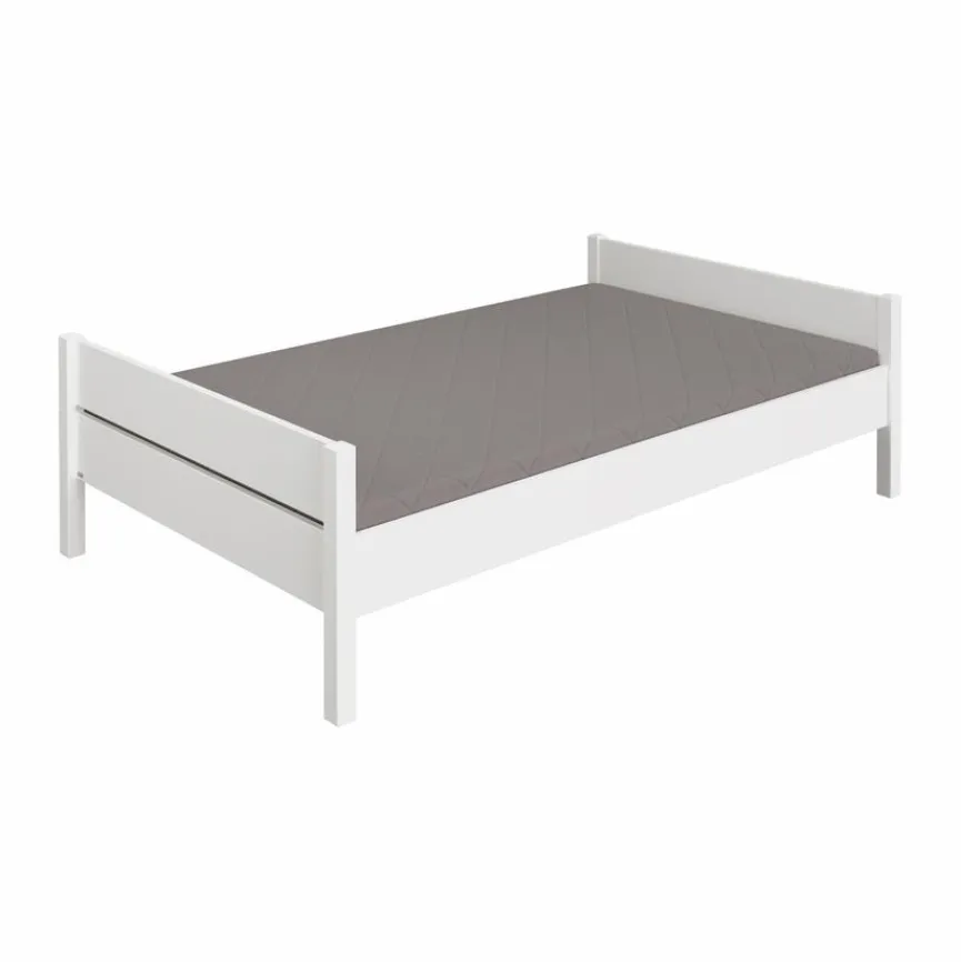 - Aus Holzwerkstoff (Spanplatte) mit kratzfester Melaminharzfolie in kreideweiß, Bettpfosten aus massiver und kreideweiß lackierter Buche