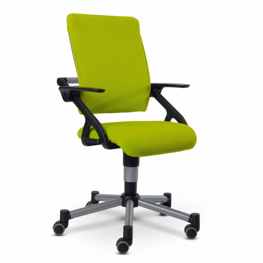 - Bezug aus Stoff in limette, Gestell/Fußkreuz aus Kunststoff in silbergrau, Armlehnen aus Kunststoff in schwarz