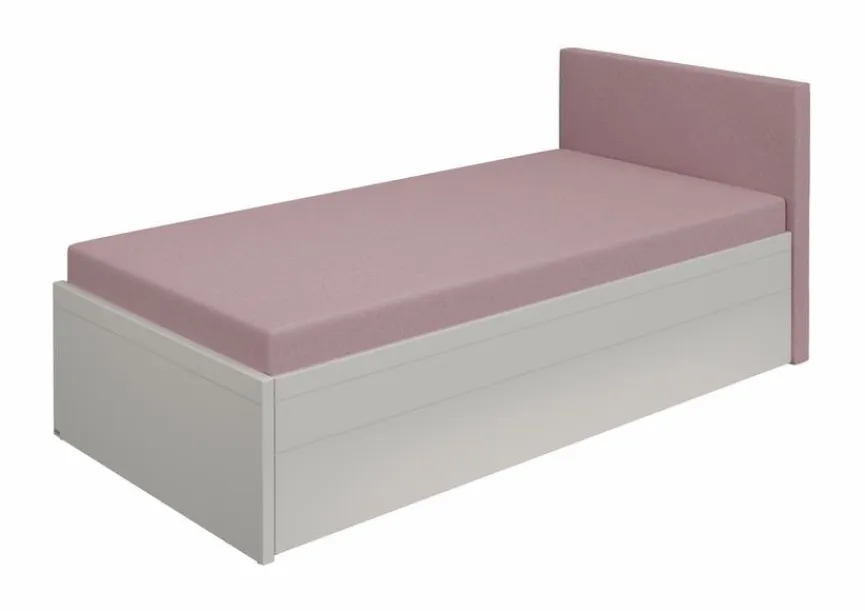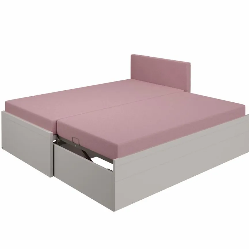 - Aus Holzwerkstoff (MDF) mit hochwertiger Dekorfolie in kieselgrau, Bezug vom Betthaupt aus Stoff in dunkelrosa