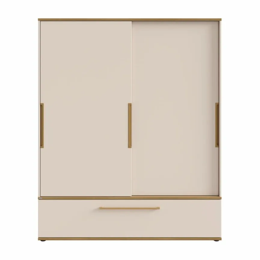 - Mit 2 Türen, 2 Mittelwänden, 6 schmalen Einlegeböden, 6 breiten Einlegeböden, 2 Kleiderstangen und 1 Schubkasten