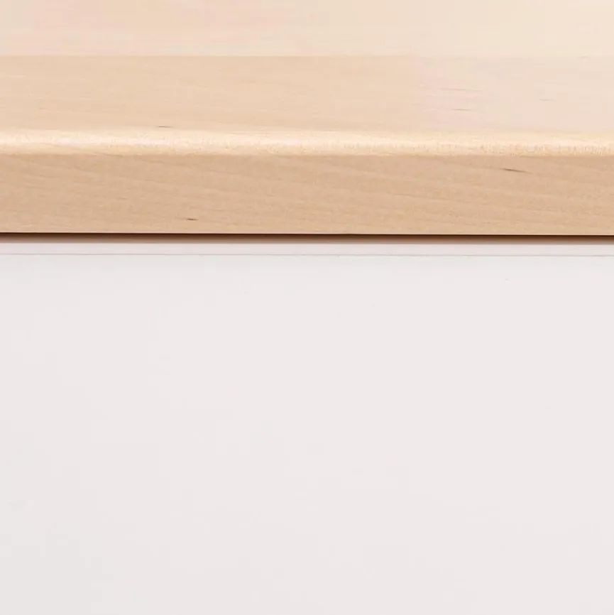 - Aus Spanplatte mit kratzfester Melaminharzfolie in Kreideweiß, Füße und Deckplatte aus massiver Birke