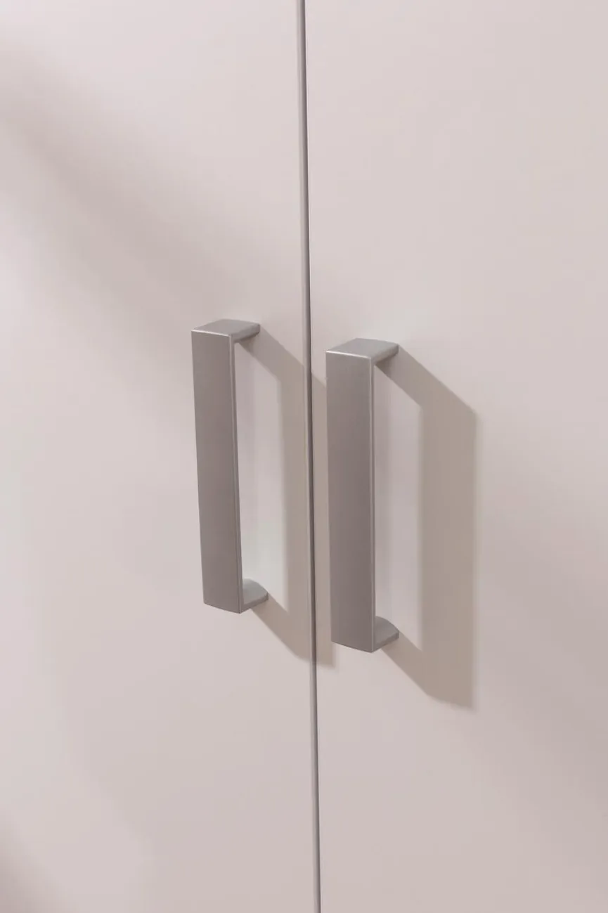 - Kleiderschrank mit 3 gedämpften Türen, 3 schmalen Einlegeböden, 1 breiten Fachboden und 2 Kleiderstangen