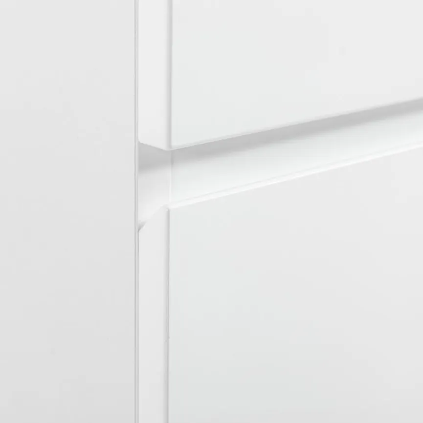 - Korpus aus Holzwerkstoff mit kratzfester Melaminharzfolie in weiß, Front aus Holzwerkstoff (MDF) in weiß lackiert