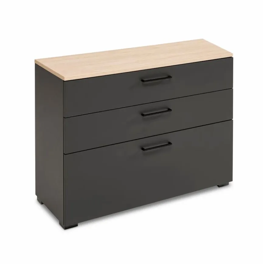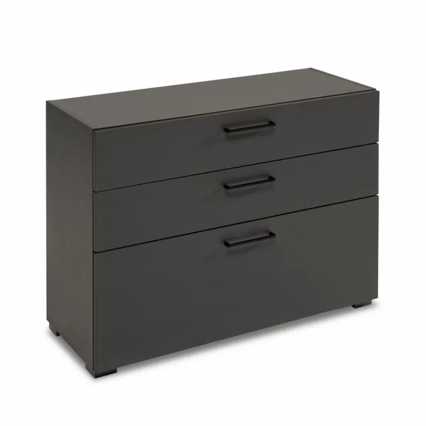 Die Kommode Cocoon des Herstellers Röhr ist ein wahres Platzwunder – drei große Schubkästen bieten viel Stauraum für allerlei Hab und Gut, beispielsweise für Unterlagen, Kleider und weitere Accessoires. Zudem ist die Kommode Cocoon mit einem praktischen Selbsteinzug ausgestattet, was ein leises Schließen der Schubladen ermöglicht.