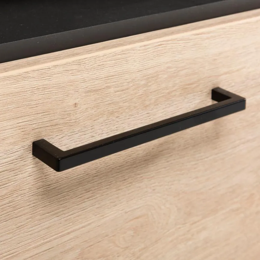 - Front und Deckplatte aus Holzwerkstoff (Spanplatte) mit kratzfester Melaminharzfolie in Eiche Sand