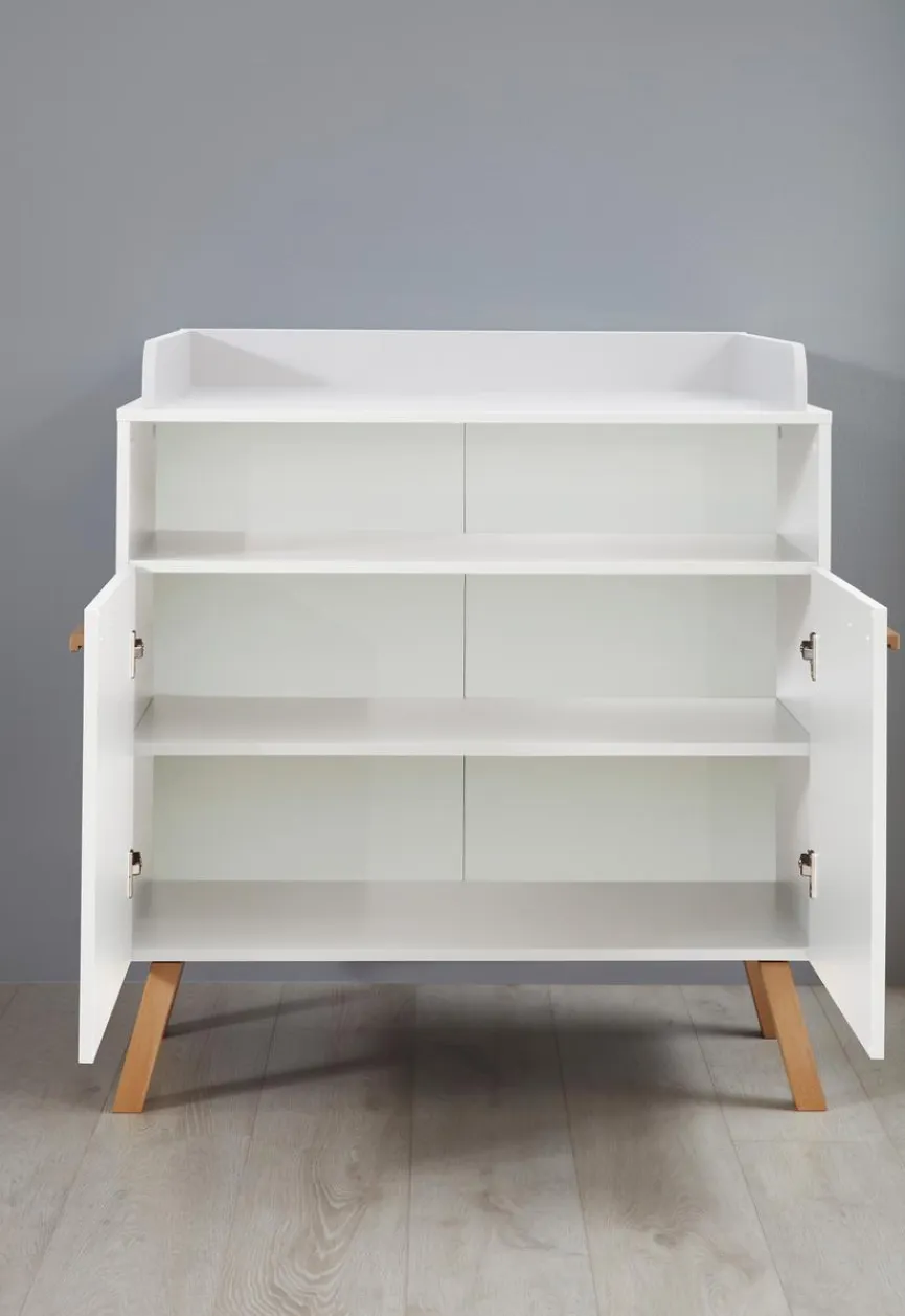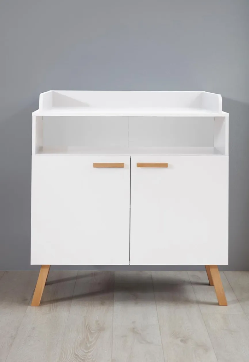 - Wickelkommode mit abnehmbarem Wickelaufsatz, 2 Türen, 1 Einlegeboden und 1 offenen Fach