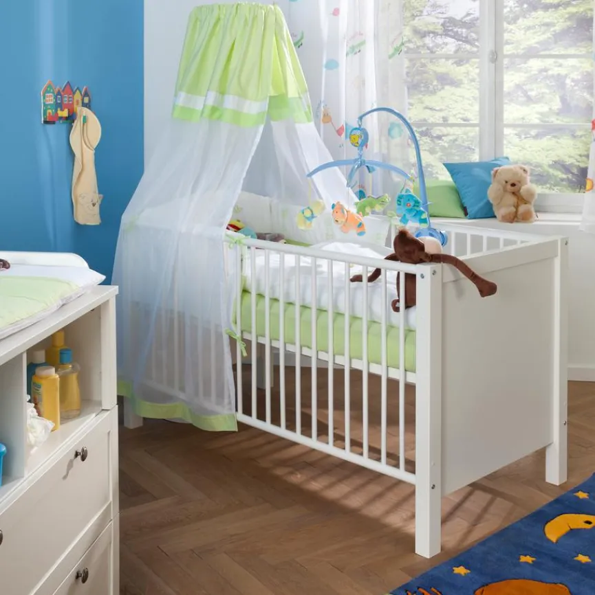 - Mitwachsend und sicher durch 3 Schlupfsprossen und in der Höhe verstellbarem Lattenrost