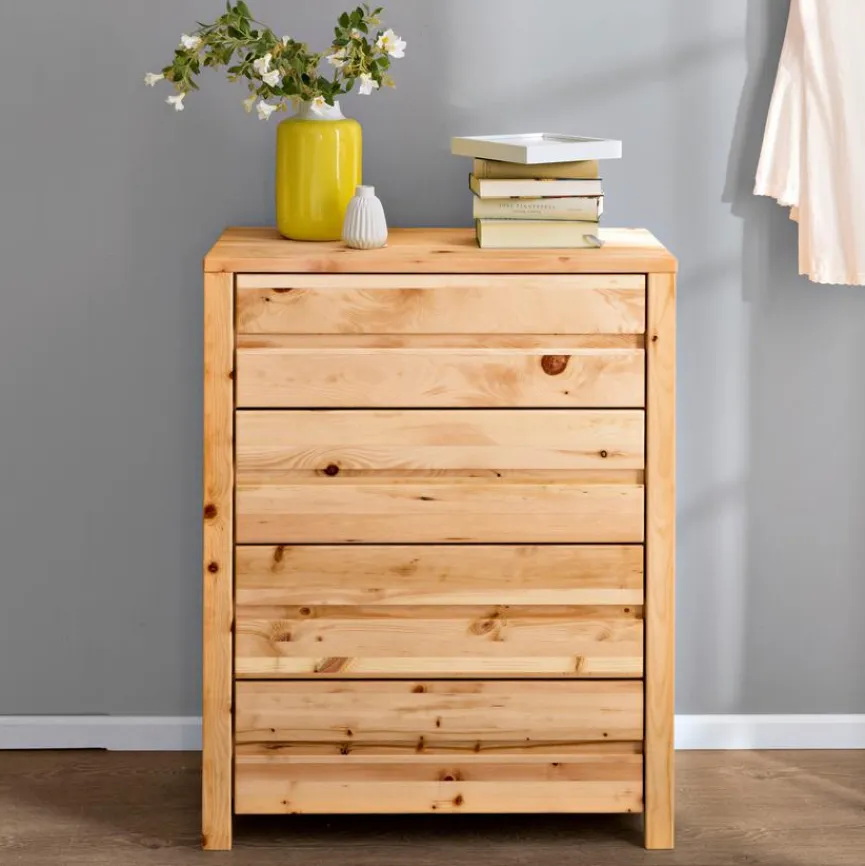 Der naturbelassene Look der Kommode Cembra wird Sie als Freund von edlen Echtholzmöbeln sofort begeistern. Bestücken Sie sie zum Beispiel mit Wäsche, Büchern oder Ihrem Zubehör für Tablet & Co. Ihre neue Kommode Cembra bietet Ihnen viel Stauraum für persönliche Dinge und passt wunderbar zu Parkett und anderen Echtholzmöbeln.