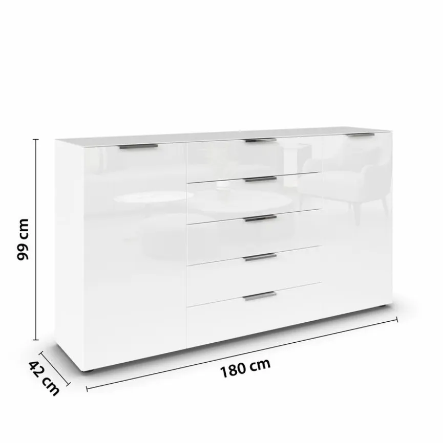 Die moderne Kommode Flipp bietet nicht nur reichlich Stauraum, sondern sie begeistert auch auf Anhieb mit ihrem eleganten Design. Aus diesem Grund bietet sie eine Reihe an Verwendungsmöglichkeiten. So könnte sie beispielsweise in der Diele glänzen oder als schickes Möbel im Schlafzimmer ihre Bestimmung finden. Aufgrund ihrer Aufmachung lässt sich die Kommode Flipp zudem spielend mit vielen Einrichtungsstilen inszenieren.