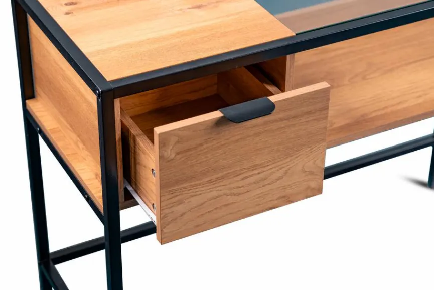 Mit dem Konsolentisch Mandurah erhalten Sie ein dekoratives und zugleich nützliches Möbelstück. Der durchdacht gestaltete Beistelltisch eignet sich für Räume wie Flur, Wohnzimmer oder Schlafzimmer. In seiner Schublade können Sie beispielsweise Schlüssel, Kosmetikartikel, Schreibutensilien und Schals aufbewahren. Die Glasplatte lässt sich für Blumen oder zum Schreiben nutzen. Den Verwendungsmöglichkeiten für den Konsolentisch Mandurah sind kaum Grenzen gesetzt.