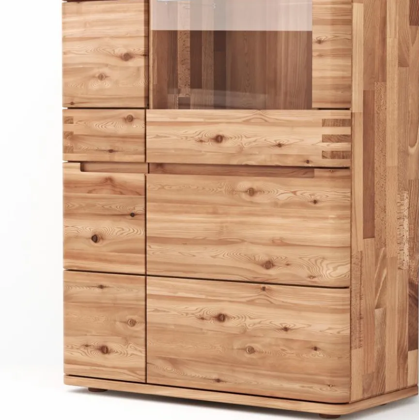 Für Massivholz – auch Vollholz – werden Querschnitte aus einem Baumstamm herausgearbeitet und durch Bohren, Fräsen oder Hobeln weiterverarbeitet. Das Material ist ein echtes Naturprodukt, das in seiner Struktur und Farbe einzigartig ist.