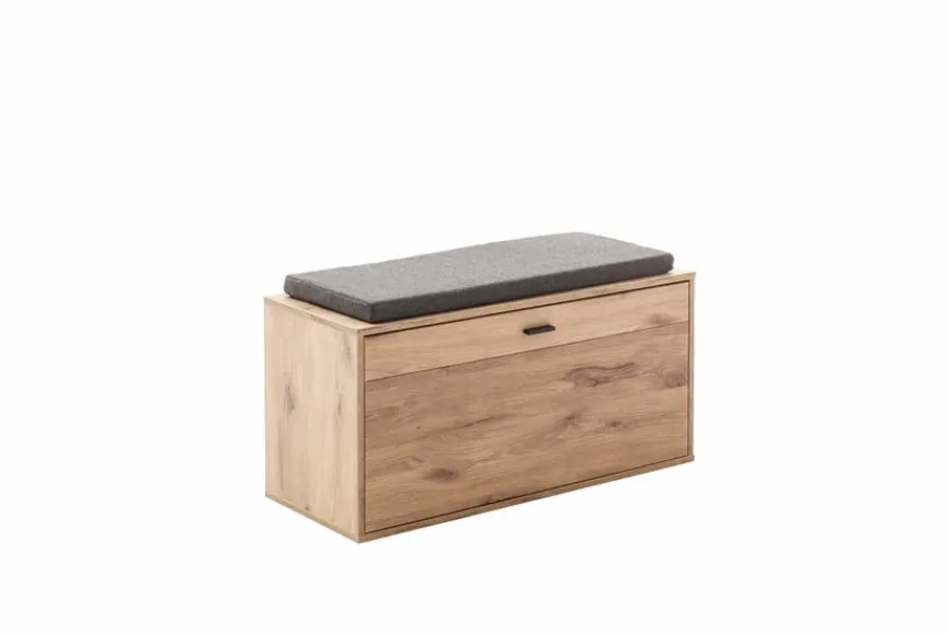 Die Garderobenbank Mezzano aus dem Hause MCA präsentiert sich als echtes Allroundtalent. Mit ihrer natürlichen Holzoptik verleiht die Umkleidebank jeder Diele einen wohnlichen Charme. Darüber hinaus bietet die Garderobenbank Mezzano Stauraum für Hausschuhe, Sandalen, Stiefel oder Sneaker sowie eine praktische Ablagefläche für Taschen, Schirme oder Schals.