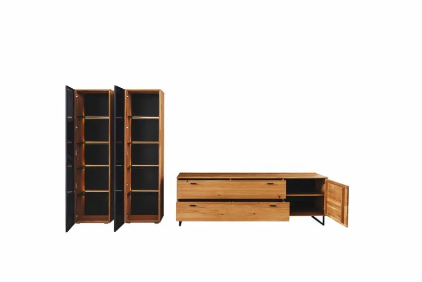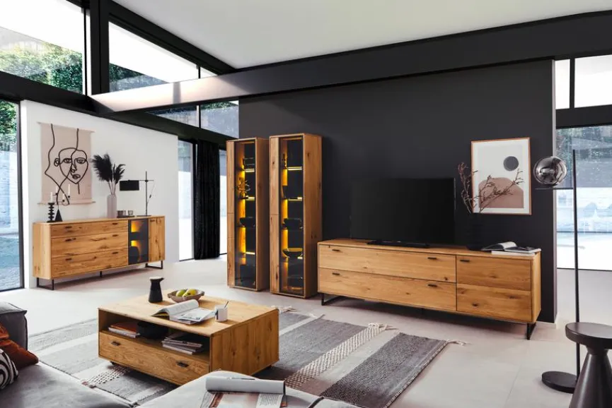 Mit der Wohnwand Arezzo aus dem Hause MCA kreieren Sie in Ihrem Wohnzimmer ein ganz besonderes Ambiente. Sie kombiniert modernes Design mit massivem Holz, sodass sie sich an verschiedenste Einrichtungsstile anpasst. Wenn Sie es gern stilvoll und gleichzeitig naturbezogen mögen, ist die Wohnwand Arezzo ideal für Sie.