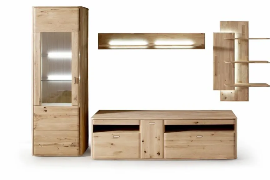 - Wohnwand aus Vitrine, TV-Lowboard, Wandboard und Hängeboard