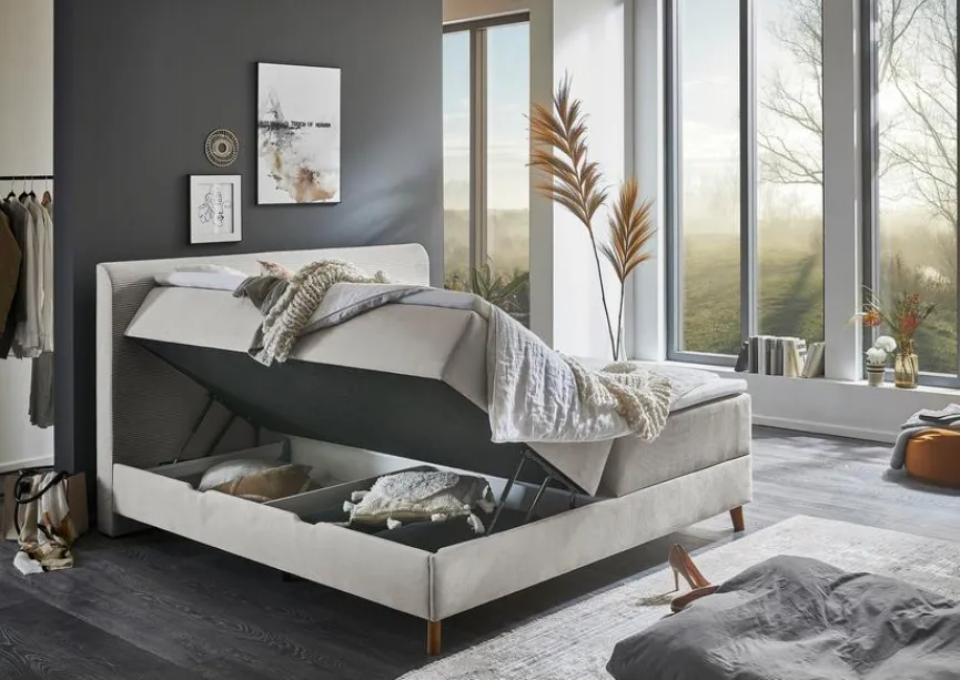 - Mit Bonellfederkernmatratze 180 x 200 cm im Härtegrad 2, Bonell-Boxunterbau und Bonellfederkernmatratze befinden sich zusammen in einem durchgehenden Bezug