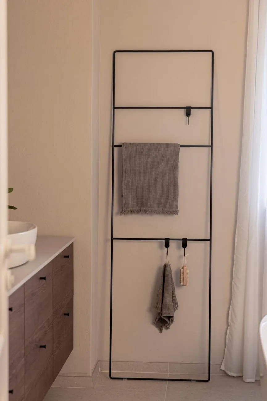 Wer gerne außergewöhnliches Design mit funktionalem Nutzen kombiniert, wird die Handtuchleiter Estina von Metallbude lieben. Die Dekoleiter überzeugt durch ihren modernen, minimalistischen Look aus schlichten Metallleisten. Platzsparend und ästhetisch nimmt die Handtuchleiter Estina Badetücher, Accessoires oder Kleidungsstücke auf und sorgt damit für Ordnung auch im kleinen Badezimmer.