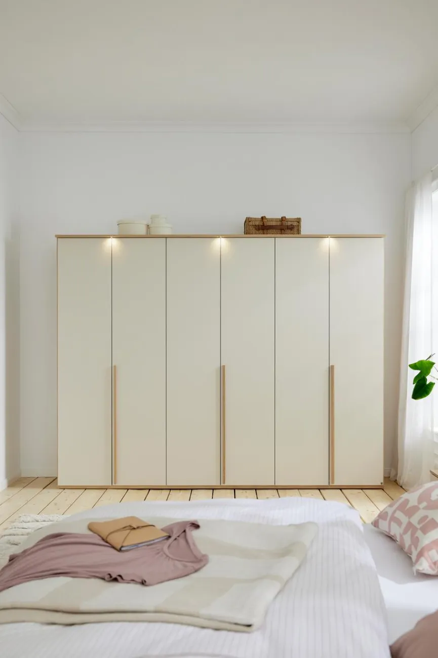 Wenn Sie in Ihrem Schlafzimmer eine ruhige, ordentliche Atmosphäre schaffen mögen, die das Ruhen und Entspannen nach dem Alltagslärm fördert, so ist der Drehtürenschrank Montino 299×229 von Musterring das perfekte Möbel für Sie. Der Drehtürenschrank Montino 299×229 bietet Ihnen nicht nur ausreichend Platz, um Ihre Kleidung unterzubringen, sondern sein modernes, minimalistisches Design wirkt zusätzlich als visueller Ruhepol im Raum.