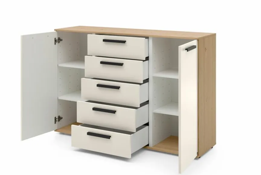 Die Kommode Montino aus dem Hause Musterring ist nicht nur eine praktische, sondern auch eine ausgesprochen schicke Ergänzung für die heimische Wohneinrichtung. Vor allem der Korpus mit Eichenholzfurnier verleiht diesem Möbelstück ein ungemein attraktives Erscheinungsbild. Auch dank der klar strukturierten Formensprache ist die Kommode Montino ein echter Gewinn für Ihr Interieur.