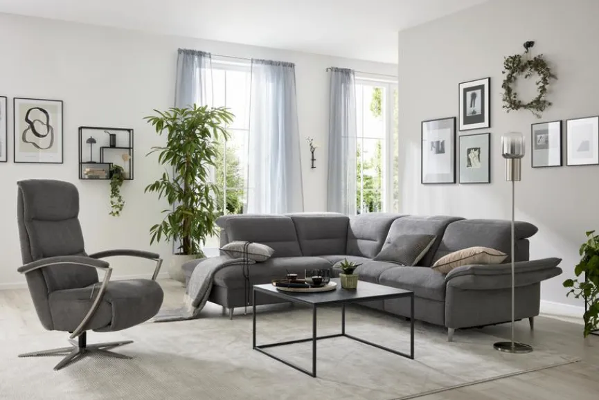 - Bezug aus Stoff (Belle) in grey, Metallsternfuß (AD4) mit Armlehnen in Edelstahloptik (2)