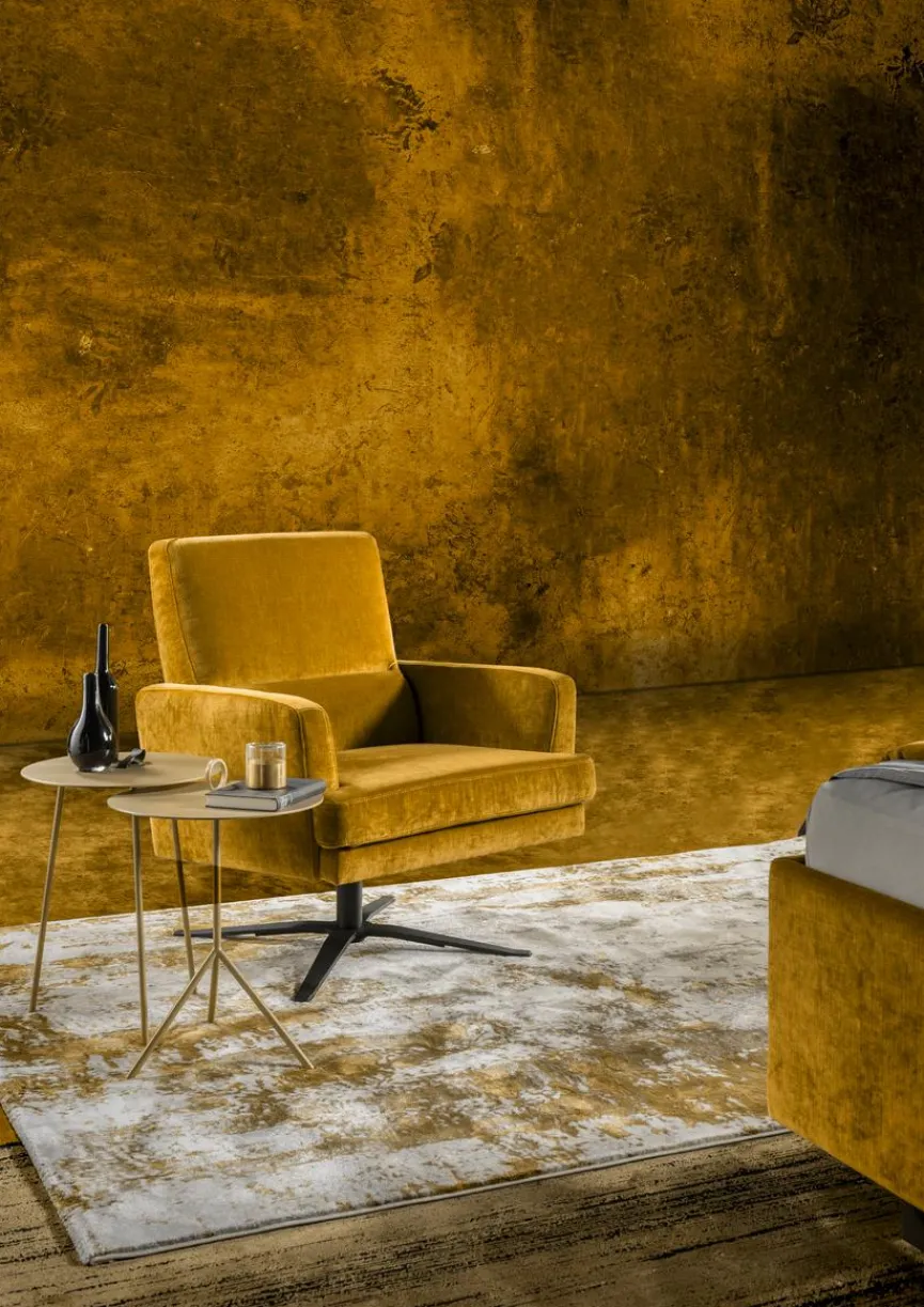 - Bezug aus Stoff (JAB1) in goldgelb (10040), Sternfuß Metall schwarz matt (250)