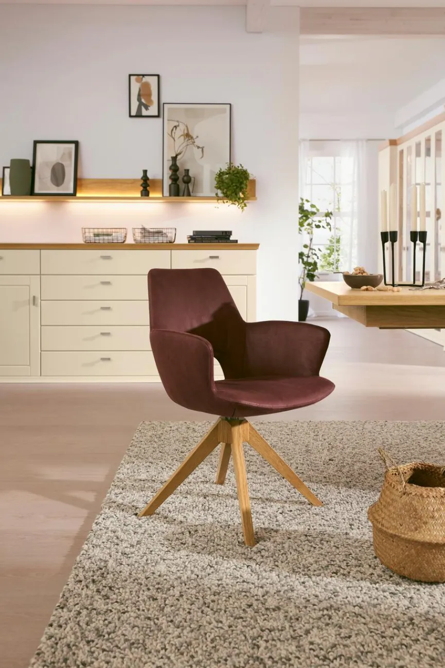 Der Stuhl Navarra von Musterring ist eine perfekte Kombination aus stilvollem Design und höchstem Komfort. Mit seinem Gestell aus Massivholz und seinen Armlehnen besitzt er nicht nur eine ästhetische Optik, sondern ist auch ein ausgesprochen bequemes Möbelstück. Der Sitz und der Rücken sind aus Formschaum gefertigt und bieten somit eine optimale Unterstützung. Der Stuhl Navarra garantiert Ihnen hohe Qualität und Langlebigkeit.