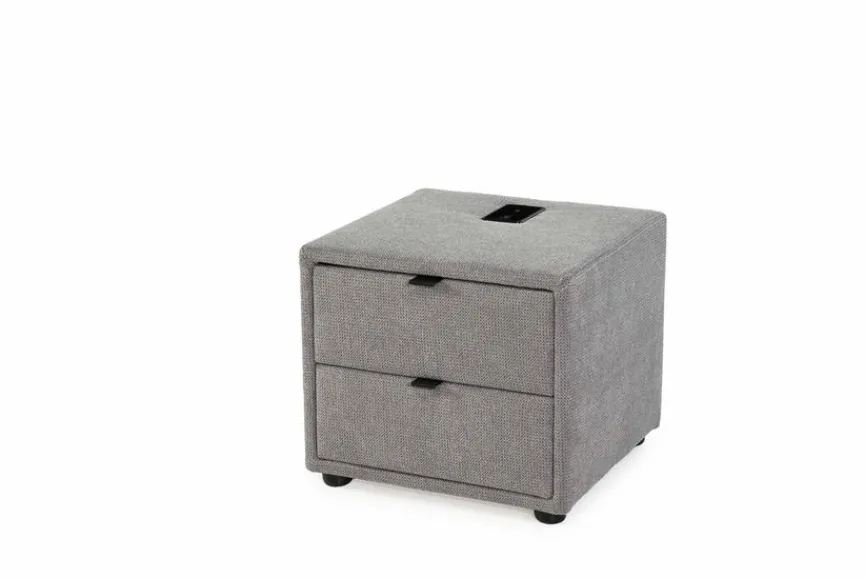Der Nachttisch Tivoli verleiht Ihrem Schlafzimmer ein warmes Gefühl. Mit seinem Stoffbezug und den zwei Schubladen bietet er gleichzeitig Stauraum und Gemütlichkeit. Diese Nachtkonsole ist die perfekte Ergänzung neben Ihrem Bett. Schaffen Sie mit dem Nachttisch Tivoli eine harmonische Atmosphäre in Ihrem Schlafzimmer.