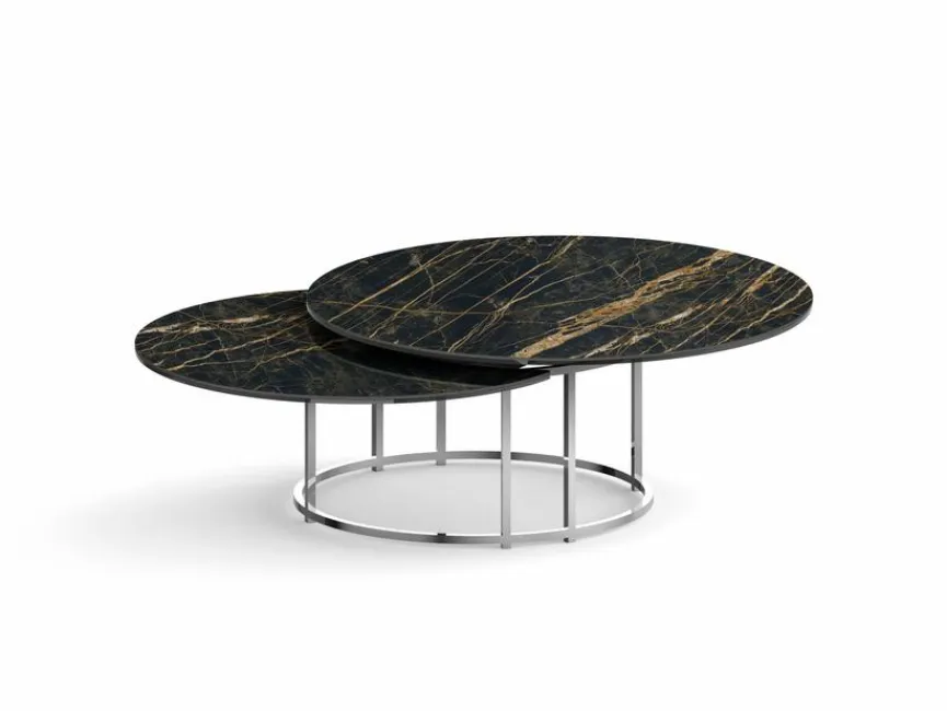 Der runde Couchtisch Colombo aus dem Hause Naos ist zum Beispiel eine wunderschöne Ergänzung zu einer Sitzgarnitur, die mit raffinierten Vintage-Akzenten aufwartet. Schlanke Formen und edel anmutende Oberflächen machen diesen Wohnzimmertisch zum exquisiten Eyecatcher. Dank der ausziehbaren Platten erlaubt Ihnen der Couchtisch Colombo flexible Nutzungsmöglichkeiten.