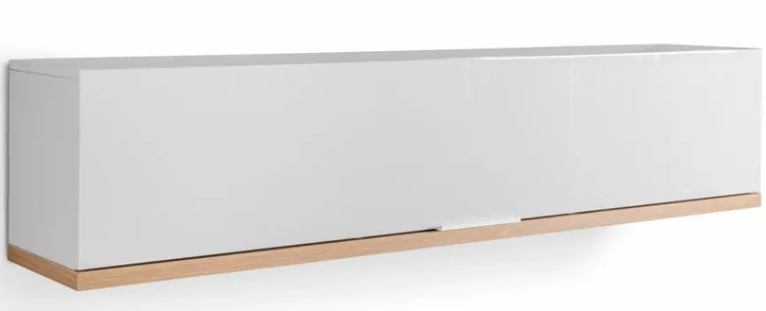 - Korpus und Front aus Holzwerkstoff (Spanplatte) mit kratzfester Melaminharzfolie in Hochglanz Weiß, Absetzung aus Holzwerkstoff (Spanplatte) mit kratzfester Melaminharzfolie in Eiche Artisan
