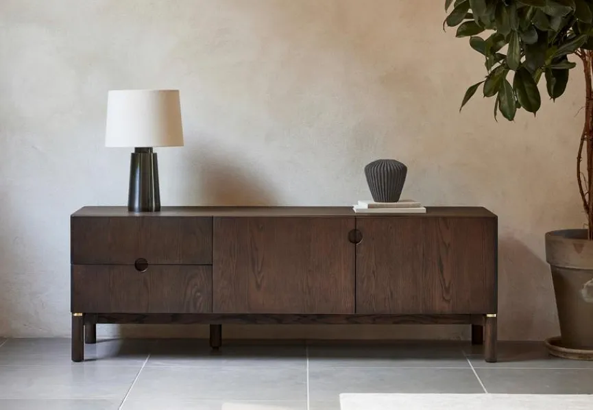 Mit dem TV-Lowboard Arun der Marke DAHEIM verleihen Sie Ihren Räumen ein ebenso trendbewusstes wie wertiges Flair, denn die edel wirkende dunkle Holzoptik strahlt eine sanfte Eleganz aus. Im TV-Unterschrank findet Nützliches und Liebgewonnenes seinen festen Platz, während die Deckplatte ausreichend Fläche für Ihr Heimkino bietet. Das ansprechende Design des TV-Lowboards Arun fügt sich außerdem mühelos in unterschiedliche Einrichtungsstile ein.