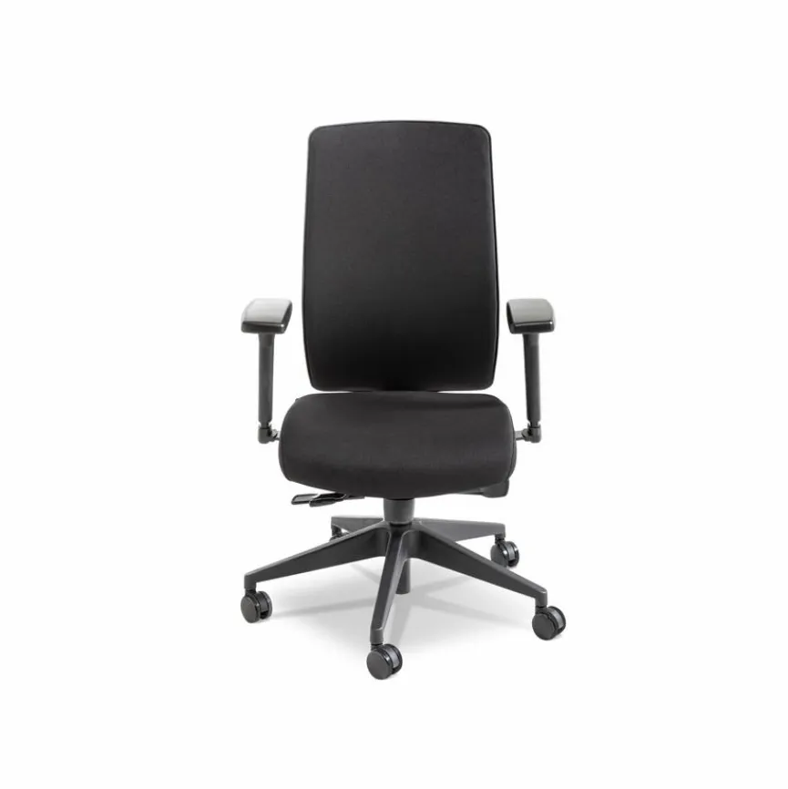 - Inkl. höhenverstellbarer Rückenlehne, Lendenwirbelstütze und 4D-Armlehnen