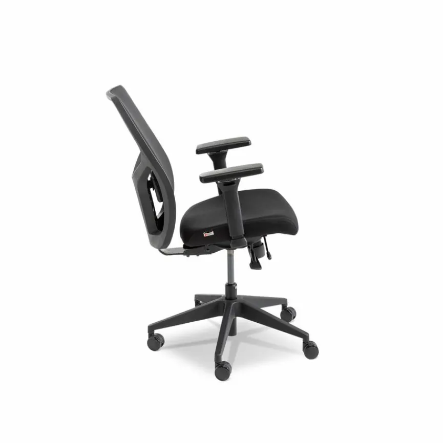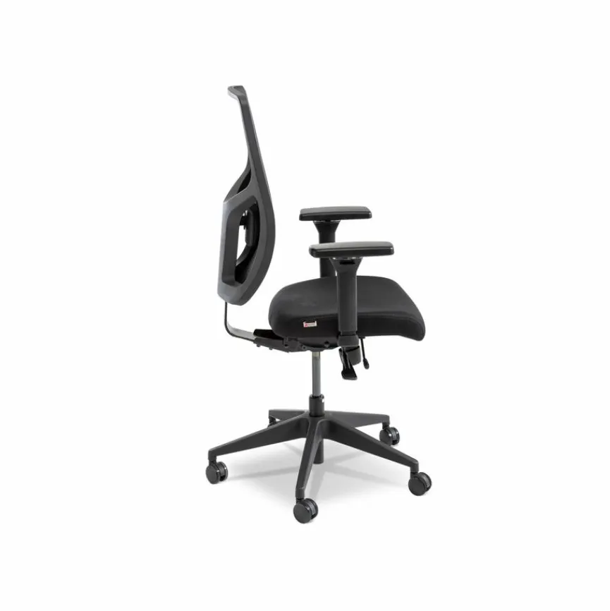 - Sitzbezug aus Stoff in schwarz, Rückenbezug aus Stoff in Mesh schwarz, Gestell/ Fußkreuz in schwarz