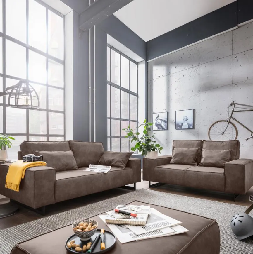 - Bezug aus Mikrofaser (Preston) in Schlamm (94), Füße aus Metall in Schwarz